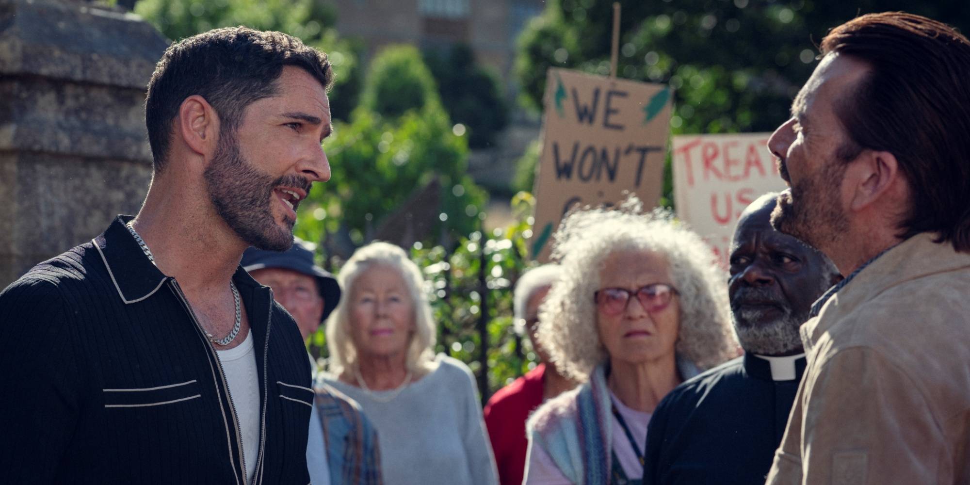 1. Com tantas participações de atores que já passaram por Doctor Who, era esperado que pelo menos um deles fosse alguém conhecido por interpretar o próprio Doutor. Esse é o caso de David Tennant, que no filme é Ian Ventham e é também o icônico intérprete do 10º e 14º Doutor.